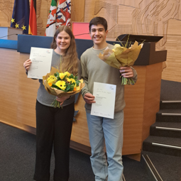 Elisa Hamann (9d) und Mert Köksal (9d) belegten in Düsseldorf die Plätze 1 und 2 und qualifizierten sich damit für die Landesqualifikation in Bochum.