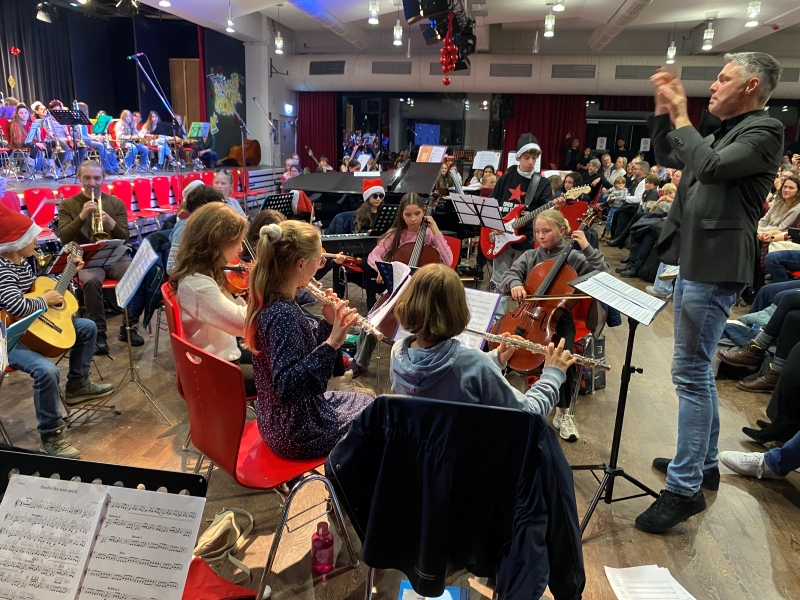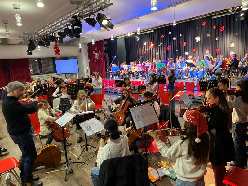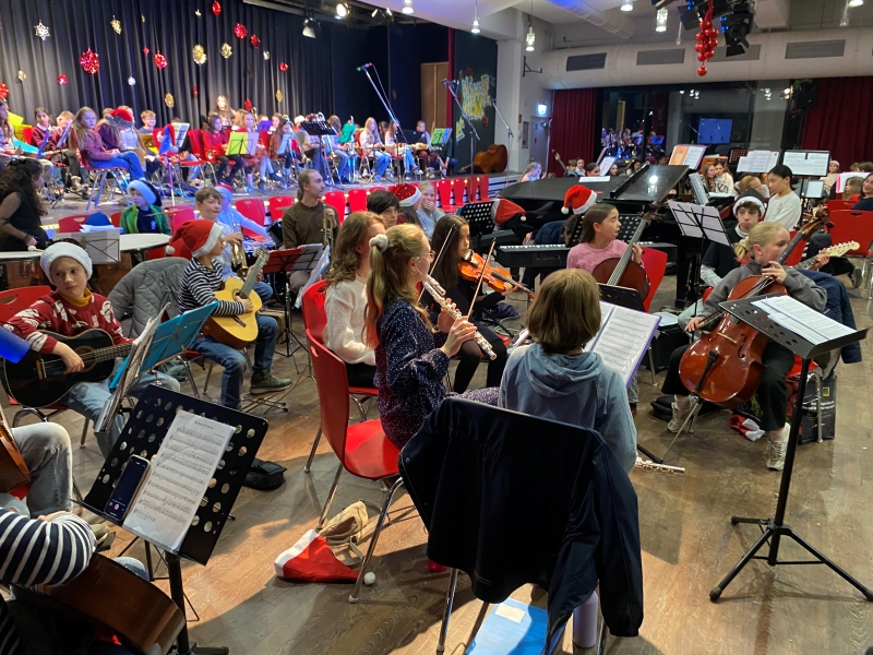 Ein herzliches Dankeschön geht an die Fachschaft Musik und alle beteiligten Schüler:innen für die wunderbare Ausrichtung und Gestaltung des diesjährigen Adventskonzerts. Mit ihrer spielerischen Begeisterung und dem festlichen Programm schafften sie es, die Zuschauer:innen in Weihnachtsstimmung zu versetzen und die Vorfreude auf das bevorstehende Fest und die Ferien zu wecken.