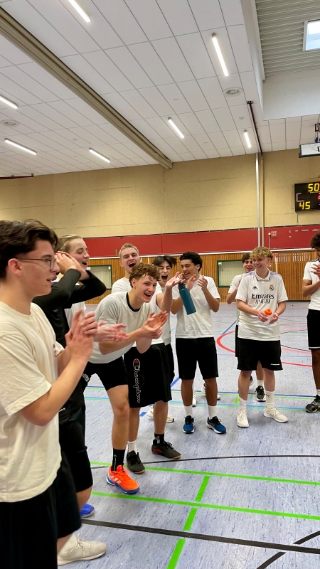 Zum Siegerkader gehörten: Muhamad A., Anton E., Leehan F., Max D., Léandro K., Tom S., Giosuè G. (Jahrgang EF) sowie Emil W. und Ben B. (Jahrgang 10), Jona H. (Jahrgang 9) und Simon S. (Jahrgang 8).