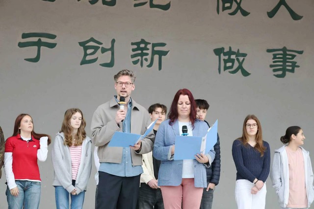 Um das herauszufinden, flogen wir am 20. März 2026 von Frankfurt zu unserer ersten Station nach Chengdu in der Provinz Sichuan. Die Stadt ist vor allem für ihre niedlichen Pandas und ihre scharfe Küche bekannt. Durch unsere Austauschpartner:innen sollten wir Chengdu jedoch von einer ganz persönlichen Seite kennenlernen. Nach einem langen Reisetag wurden wir von ihnen und ihren Lehrkräften herzlich vor der Chengdu Experimental Foreign Languages School empfangen – einer Privatschule in der über 20 Millionen Einwohner zählenden Metropole, die sich auf den Unterricht von Fremdsprachen wie Englisch, Deutsch, Französisch und Japanisch spezialisiert hat.