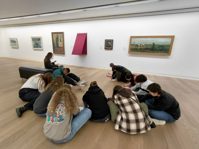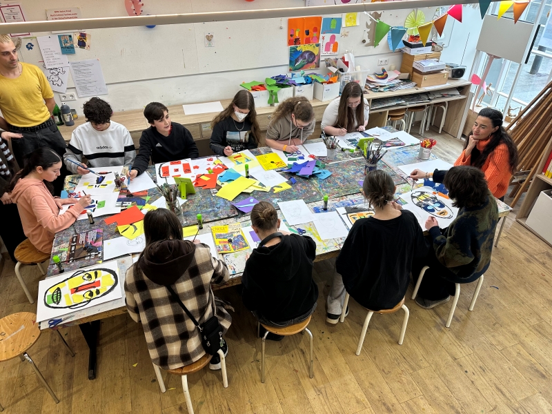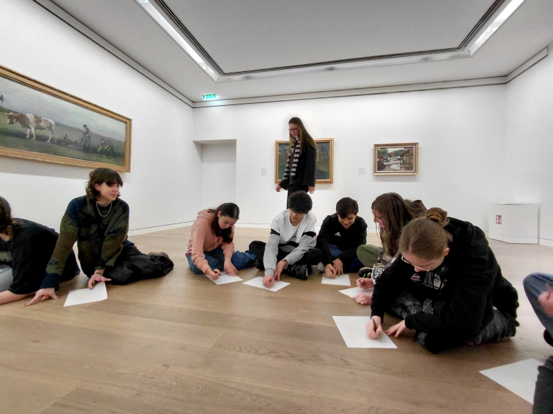 Rathaus von Elberfeld gebaut wurde, zu sehen. Dieser kulturelle Ort wurde am vergangenen Dienstag von der 8d aufgesucht, um dort eine Auswahl der 3000 Gemälde und 500 Skulpturen kennenzulernen. Passend zum Thema "Kommunikation" wurden Exponate ausgewählt und mit den Schüler:innen besprochen, abschließend durften diese selbst bei einem Workshop im hauseigenen Atelier tätig werden. Die dort entstandenen Werke werden bei der Kunstjahresausstellung zu sehen sein.