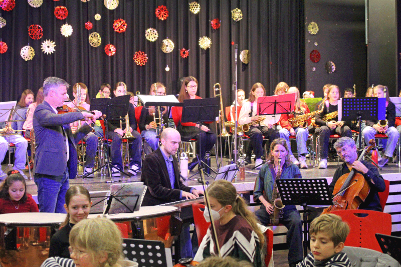 Ein herzliches Dankeschön geht an die Fachschaft Musik und alle beteiligten Schüler:innen für die wunderbare Ausrichtung und Gestaltung des diesjährigen Adventskonzerts. Mit ihrer spielerischen Begeisterung und dem festlichen Programm schafften sie es, die Zuschauer:innen in Weihnachtsstimmung zu versetzen und die Vorfreude auf das bevorstehende Fest und die Ferien zu wecken.